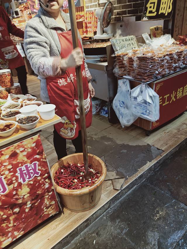 磁器口古镇,来了以后才发现这就是个卖特产的地方,长长的街上全是卖东西的,根本没有什么可以观看的。火锅底料、辣椒酱、茶叶、麻花