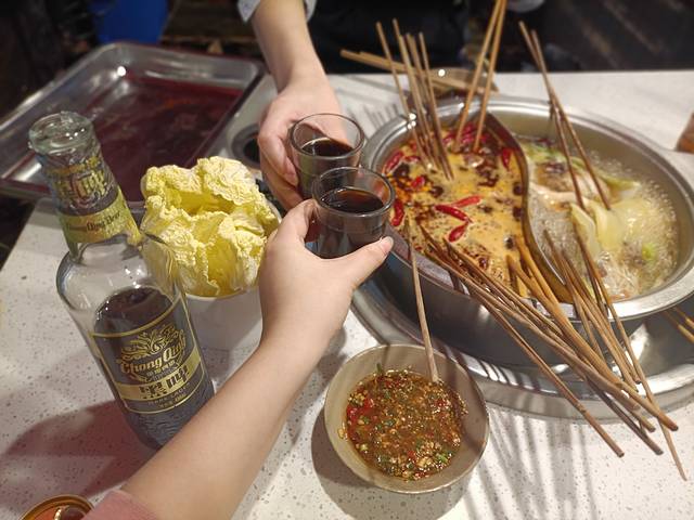 辛苦赶路,当然要犒劳一下自己咯,第一顿夜宵串串走起。不过这味道确实很一般,老板直接就跟我们说,这边基本上都是按游客的口味调配的,所以几天下来我并没有吃到所谓的辣得不行的美食
