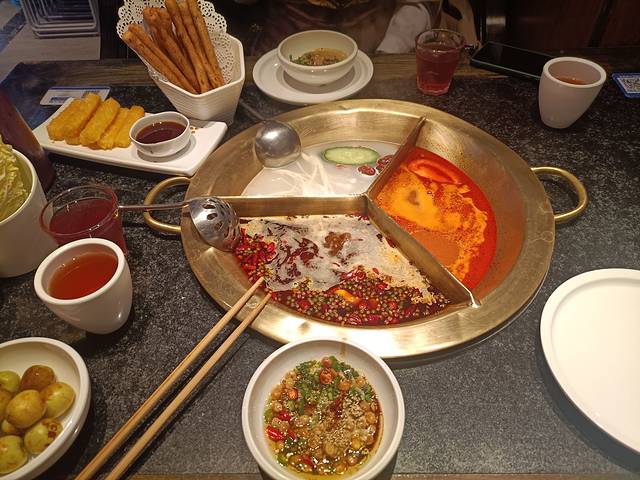 因为第一天没吃上这家人气很旺的火锅店,今天必须得来尝尝,果然这一区的火锅都是为游客准备的,点了加辣还是没味道,后来服务员又给我们加了一盘辣椒还是微辣……所以火锅在我看来是差了一点,但这家服务真的好到没话说,服务员第一次文问我们味道如何,我们说没啥辣味,就给我们加了辣椒,第二次我们快吃完了又来问,我们说还是不辣,她就说要给我们换锅底,我们说不用了,之后一直跟我们道歉,买单的时候又跟我们道歉,整得我们真的好尴尬……