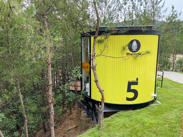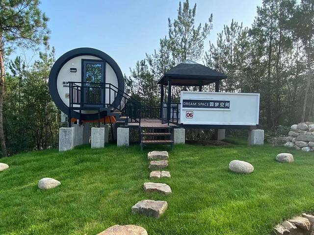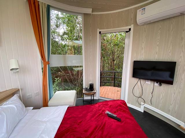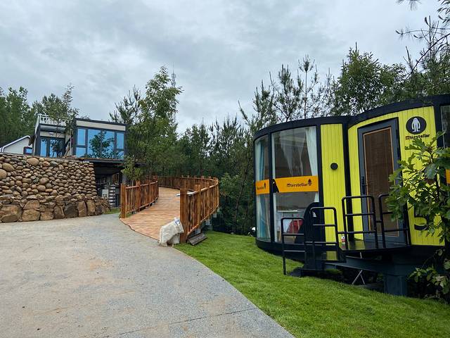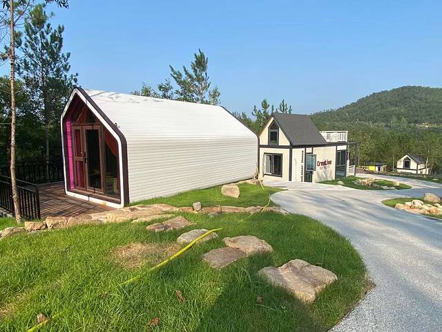 这个房子很有科技感。湖边山坡上都有,也是景区最多的一款房型。