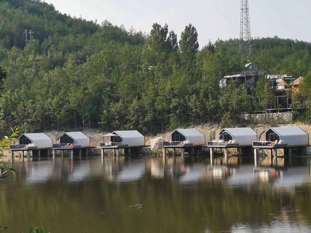 闲话不说,进入正题。偶然的几乎,听一位喜欢房车的朋友提起一个小众露营地。河南五朵山,那边山里面露营很不错。我这人虽然喜欢户外、大自然,但是我更想住的舒适。所以一直把这茬放着。前些日子,正好去郑州参加一个展会,时间正好有点富裕,寻思着去五朵山看看。于是驾车从郑州往南行。经过4个小时左右,进入了国道,然后转小路。跟着导航在矮山的山路上又走了一段,就看见一片水库,水库岸边和山坡上有很多个性小房子,在里面有个半岛,里面很多木屋。