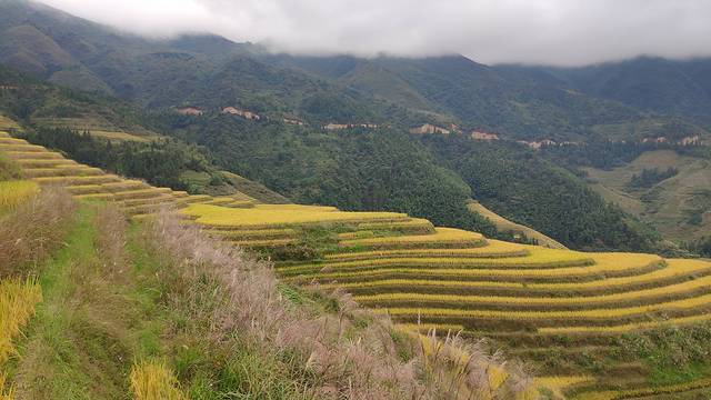 龙脊梯田在桂林市的北部,地势较高,桂林市区到梯田景区售票处需要两个小时的车程,景区售票处到最里边的金坑索道售票处还有23公里的崎岖山路,这段大约得开40分钟,当天下雨,车速不敢快,所以开了50分钟。