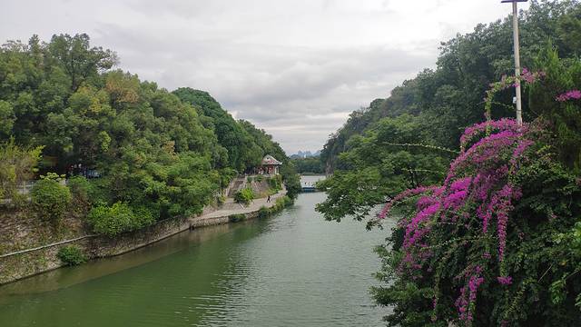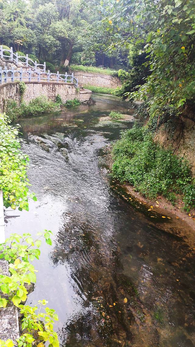 最后没有找到,顺着河边跑到了景区正门,是跑的,晨跑了两公里,此时雨歇,空气清新,气温适中,适合跑步。