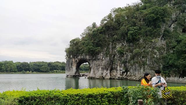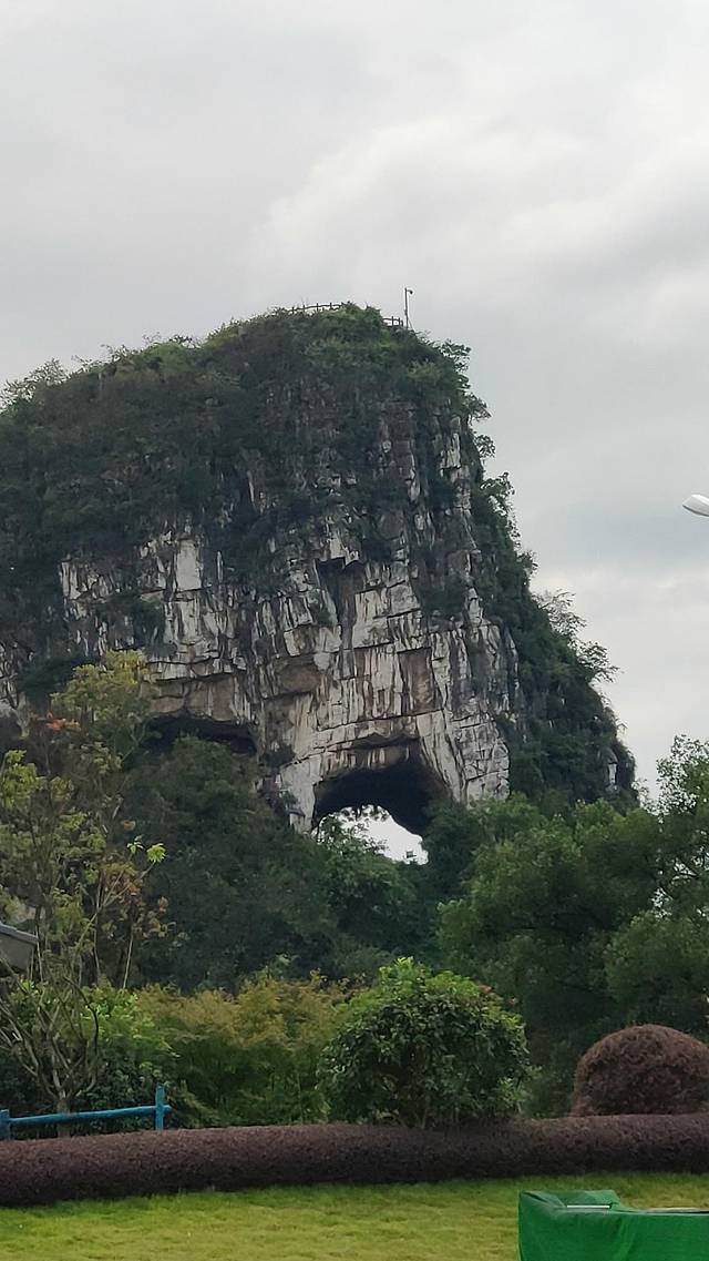 桂林好多地方其实都能看到类似象鼻形状的山,比如穿山景区里有一块远观像象鼻洞的山,我觉得更像。见下图对比效果。