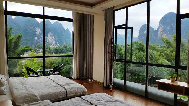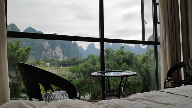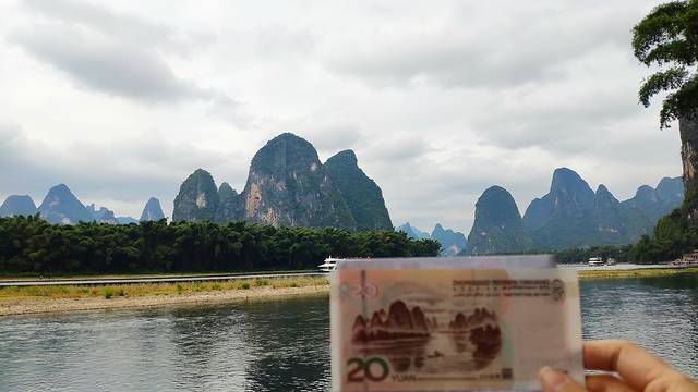 桂林山水甲天下,阳朔山水甲桂林,20元背景在兴坪……高铁站又在兴坪,于是阳朔首站就选在了兴坪,预定了在屋里就能观赏20元背景取景地的观景客栈——小河人家。
