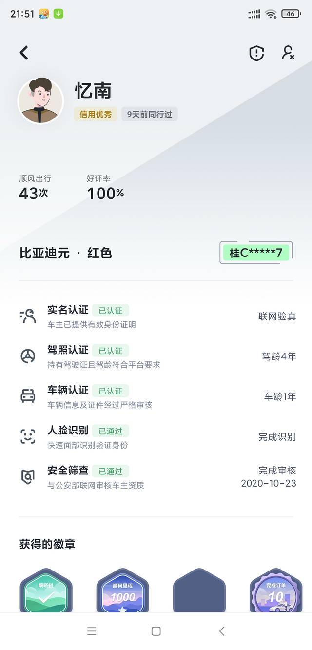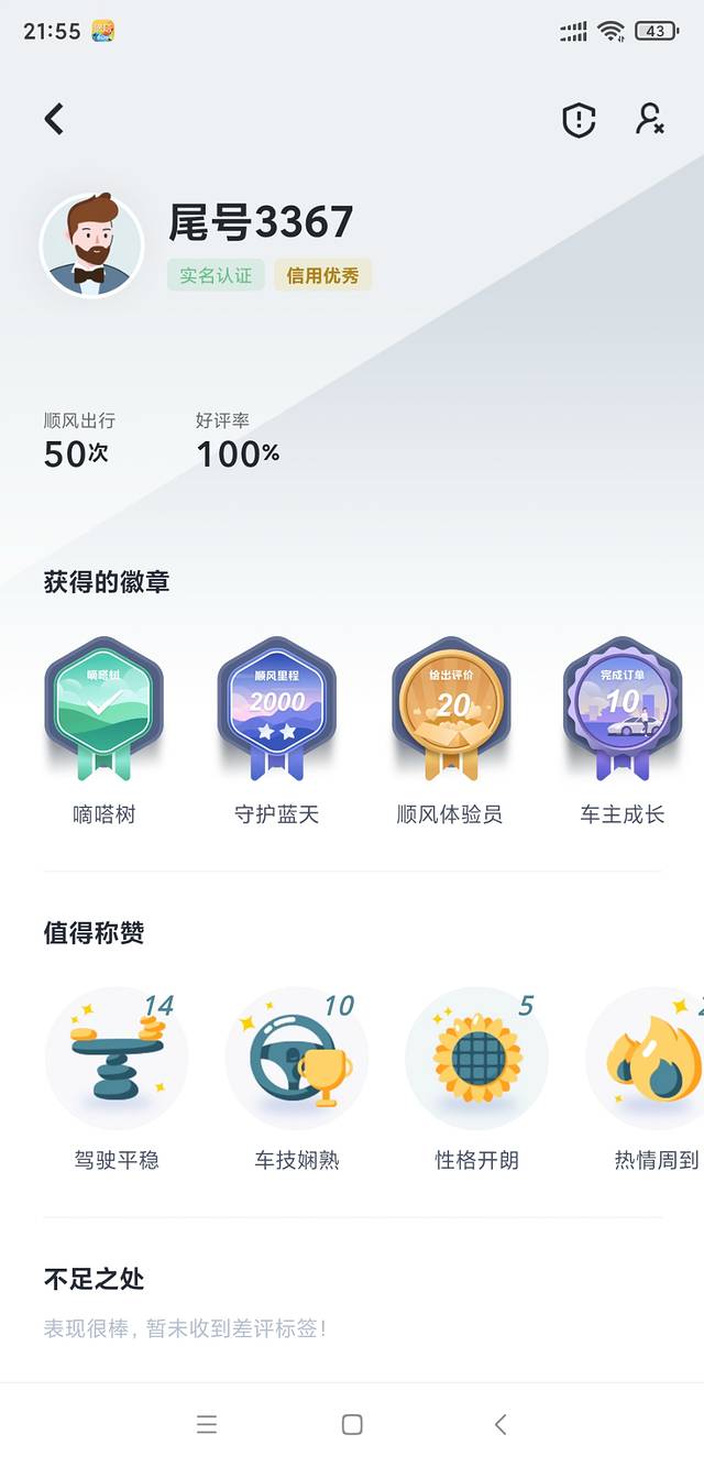 前边截图可以看到我没给好评,但此处显示该司机的好评率竟然是100%,后来陆续我又发现“嘀嗒”的很多问题,后边会一一提到。