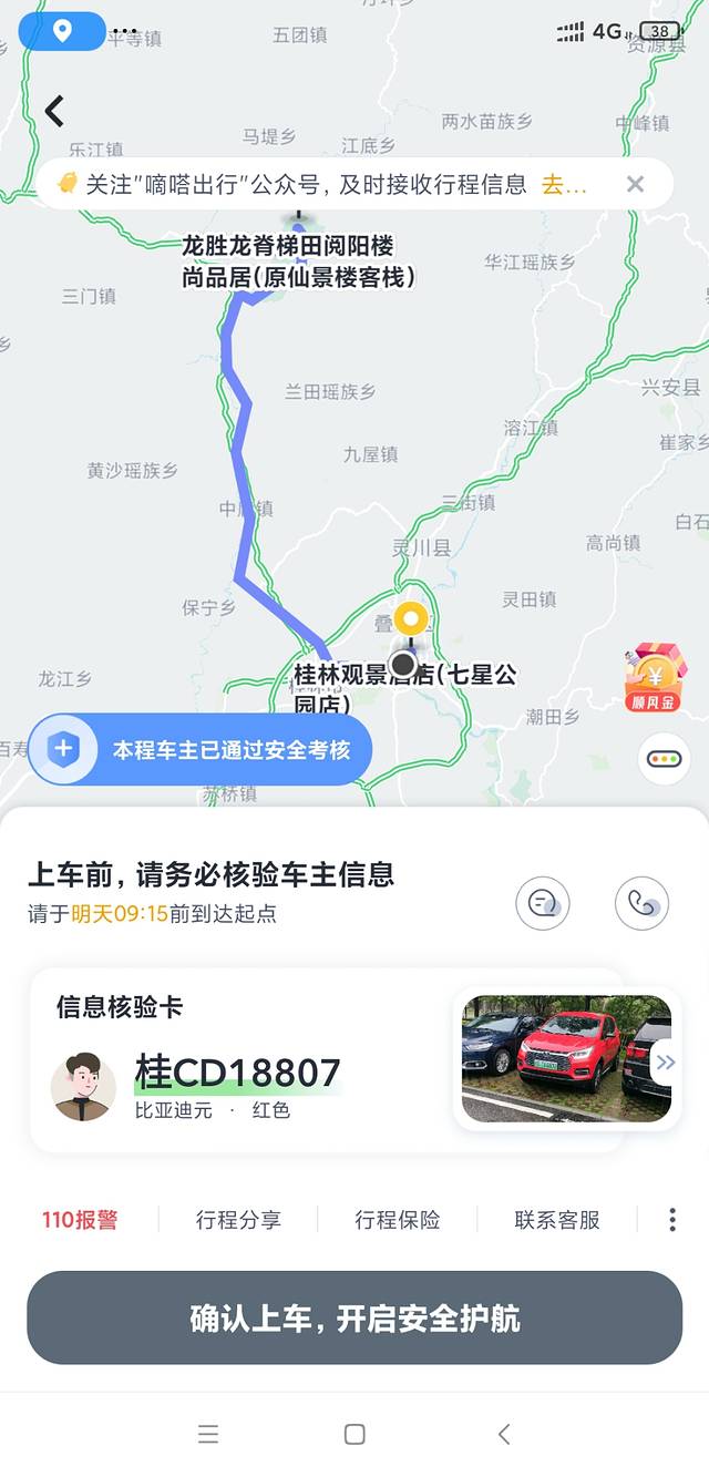 预约了嘀嗒顺风车,从观景酒店去龙脊梯田的阅阳楼客栈。