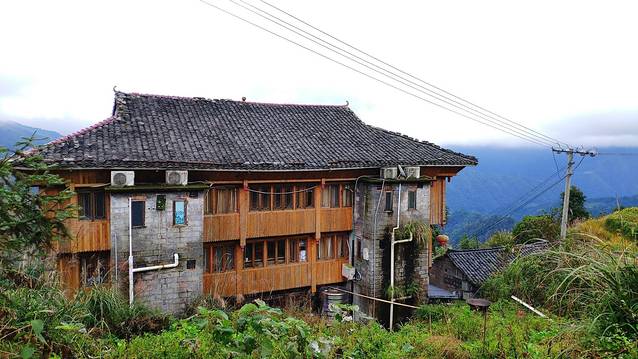 到梯田索道售票处时虽是中午,但山上气温很低,还有点下雨,索道售票处距离客栈还有好几公里的山路。