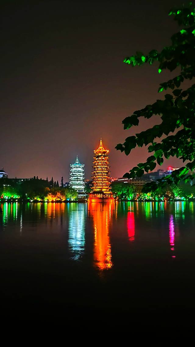 双塔景区要门票,但赏其景色要在景区外,所以没进,在傍晚亮灯前后分别拍了照片。其实没啥好看的,和其他地方的夜景没实质区别。