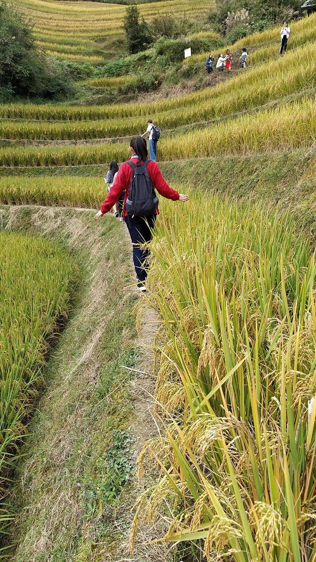 午后气温逐渐上升,退房步行下山,没带行李,轻装出行,不用乘坐索道,步行下山还可以穿行到稻田里,比索道直接下去有意思。
