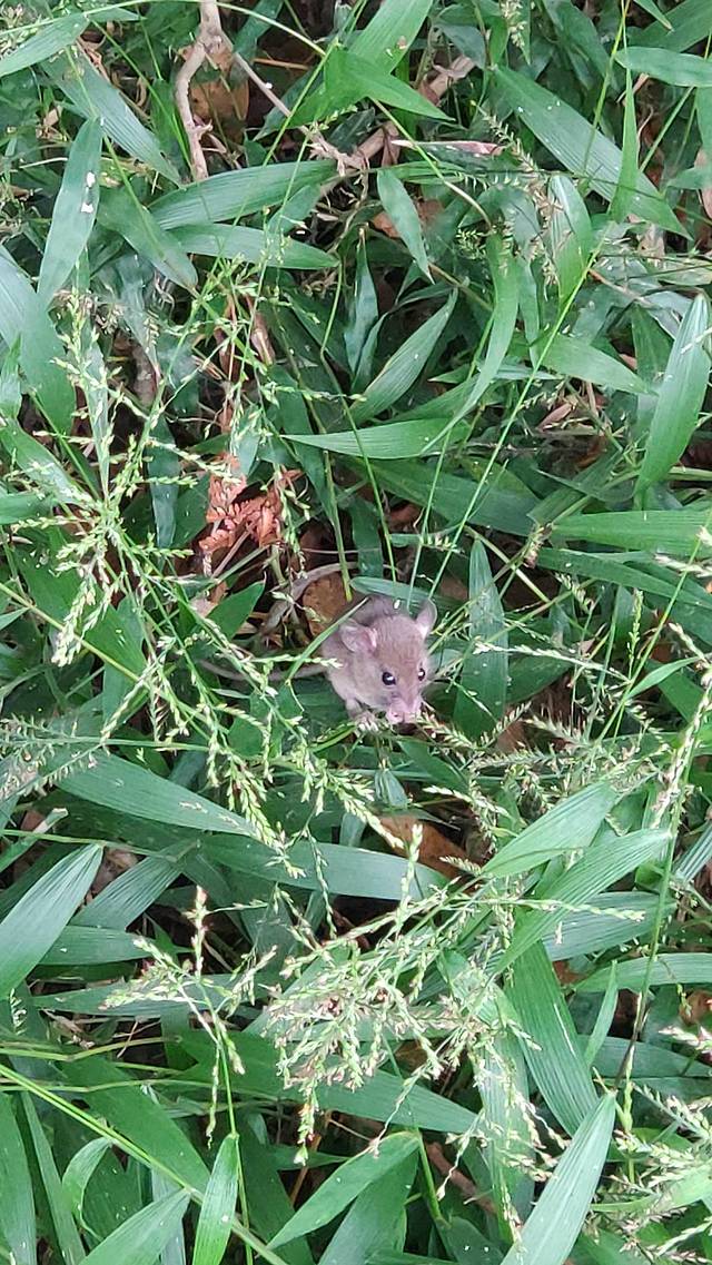 象山景区外漓江边草丛里的小老鼠,吃花无暇顾及我在拍它