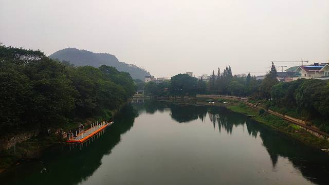 清晨,雨淅淅沥沥地下着,偶尔雨停,按着附近居民的指引去了对面的七星景区,沿着景区外的河边找免费入口。