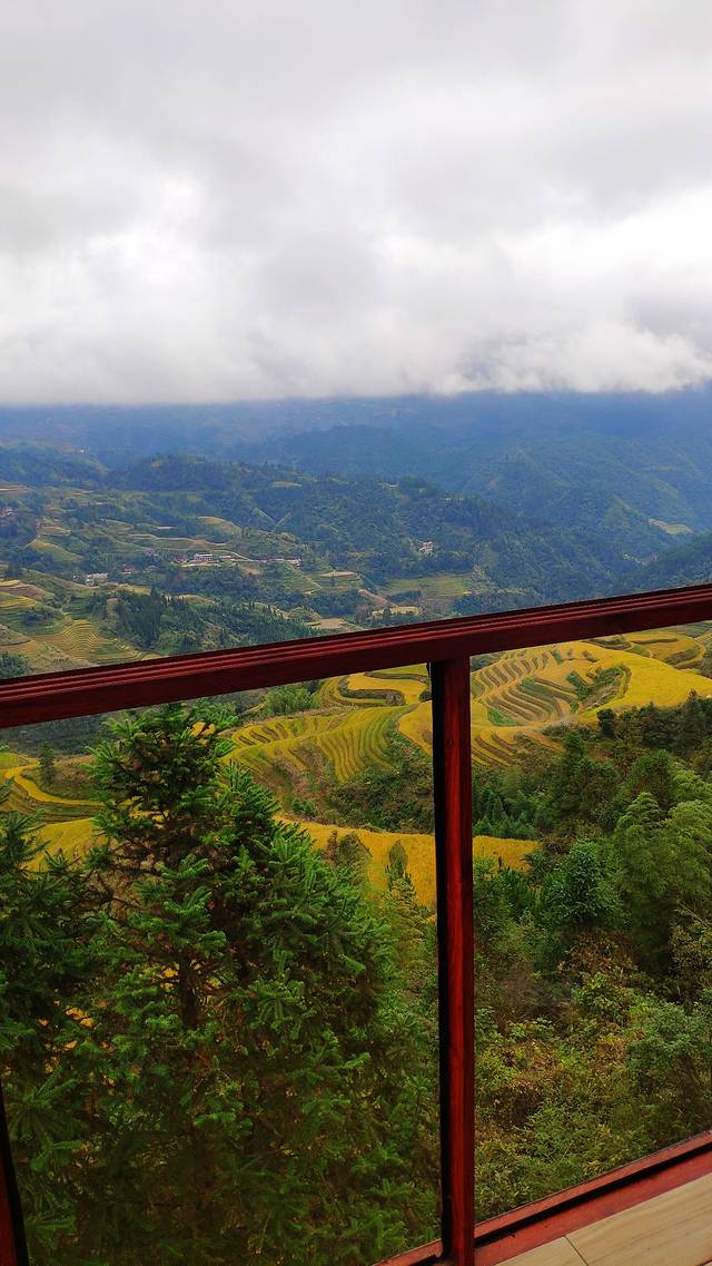 风逐渐停了,在屋里扒着窗户就能看到梯田,一览无余。金坑大寨梯田主要有三个观景台,3号在山顶,1号2号在低点位置,阅阳楼在3号旁边,其实感觉屋内观景效果比3号观景台效果好。怎么都感觉这房间定值了,不枉此行。