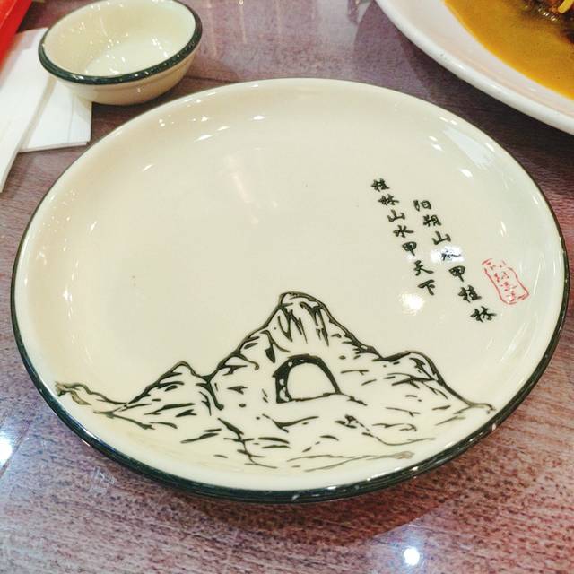 此时大约早晨7点过点,景区内空无一人,我们也不好擅自找地方进去。此时,雨又下了起来,转身看到象鼻山米粉店,避雨顺便进去吃了个早点。
