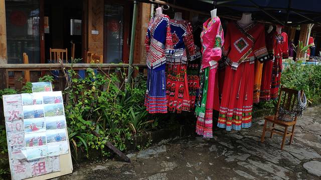 客栈内有民族服饰免费穿,景区里便宜的10元,贵的30元。所以住这里很划算。