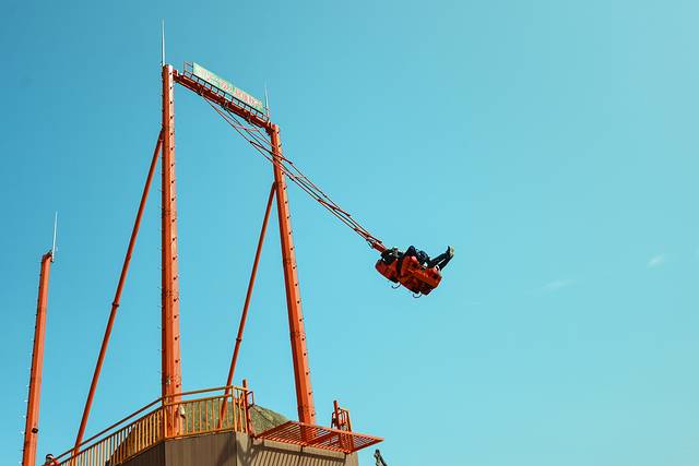 悬崖秋千(单人 、双人99)这个没敢坐,就是在悬崖边上装了两个秋千,把人荡出去,听着惊叫声,我已经满足了。坐一次秋千大概荡20次结束(吃饭的时候无聊数的)。
