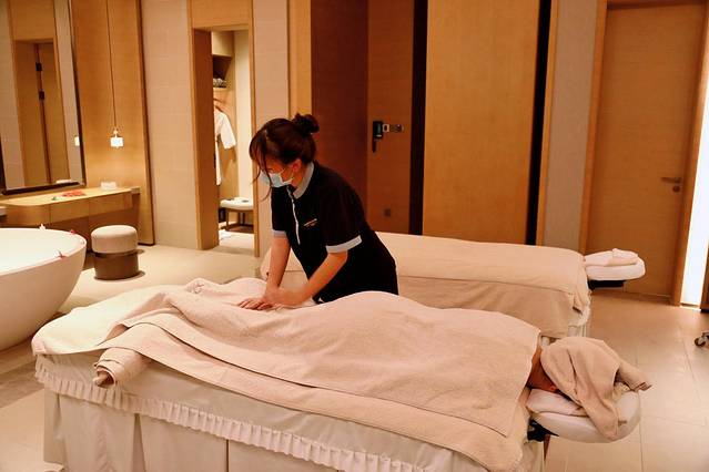 SPA的前台在3楼,在选择好做哪种类型以后,下到二楼在专门做SPA的房间里面,环境很好,香薰的味道很好闻,换好衣服、泡脚,然后就可以躺上去全身心放松,伴随着轻音乐,大多数人都能睡着。
