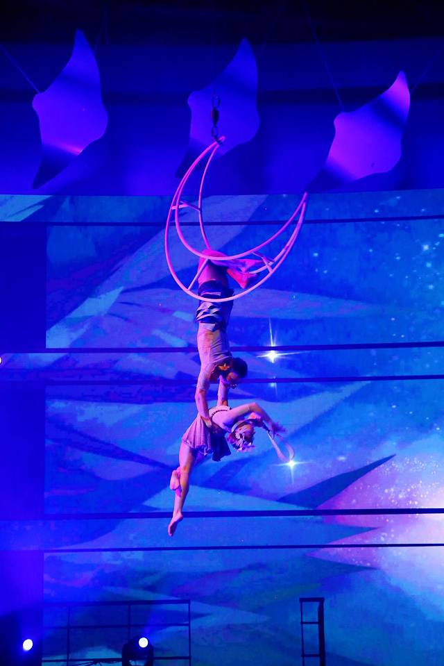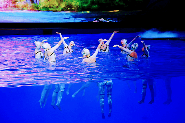 这场秀的主要剧情是讲了海洋之子解救了被海怪诅咒变成天鹅的公主后,两人坠入爱河,之后海怪又把公主掳走,关押了起来。海洋之子为了再次救公主,走上艰辛又危险的营救之路。经过各种磨砺和险阻,最终救回了他心爱的公主。