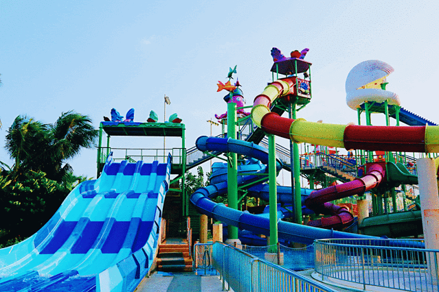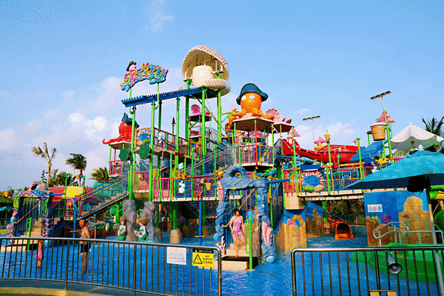 公主塔 ,体验极速冲浪。在公主塔化身“骇浪骑士”,和朋友或家人一起坐于圆形的浮筏上,在巨大的滑道中顺水而动,体验极速冲浪的乐趣。