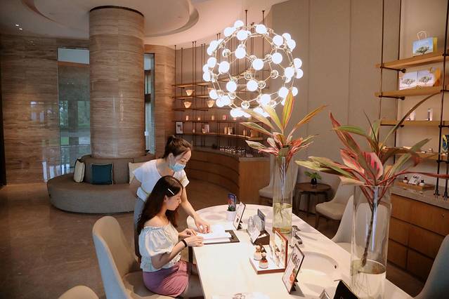 这是SPA的前台,可以在这里选择你想做哪种类型的,每种产品的味道都不一样,可以现场挑选你喜欢的,还会根据你的喜好以及忌讳填个表格,理疗师在进行按摩的时候会注意。