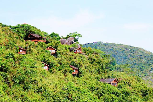 园内的 盘山 路、石阶、栈道、亭台楼阁等都零星地隐蔽在丛林中,最有趣的当属密林之中一座座悬架鸟巢式木屋,可供游人居住。虽然每座木屋之间相隔不远,但因为位置的错落,即使你有望远镜也看不到对方,非常私密。