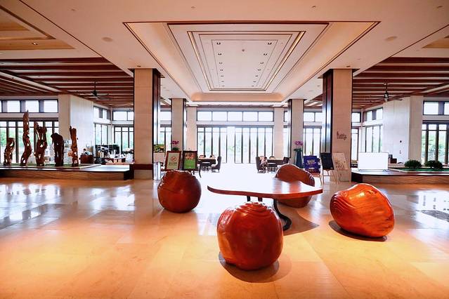 开放式的大堂,让人感受到自然的生机勃勃。酒店的设计灵感源自全球知名的热带海岛天堂,随处可见的绿植和原木设计,色调柔和,吊扇、石头、木雕、花卉图案和热带植物让整体氛围更加温暖。