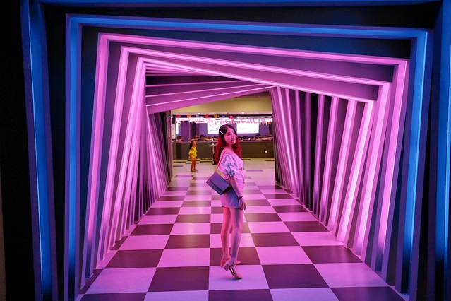 作为FIA的起源地,方程式也是 法国 重要的文化之一,在索菲特有一个很时尚,有很酷的网红打卡地,那就是可以360度漂移的卡丁车。一进来就看见这个“时光隧道”,灯光颜色还随时间一直变化的,非常漂亮,据说还是 三亚 比较火的网红打卡地。