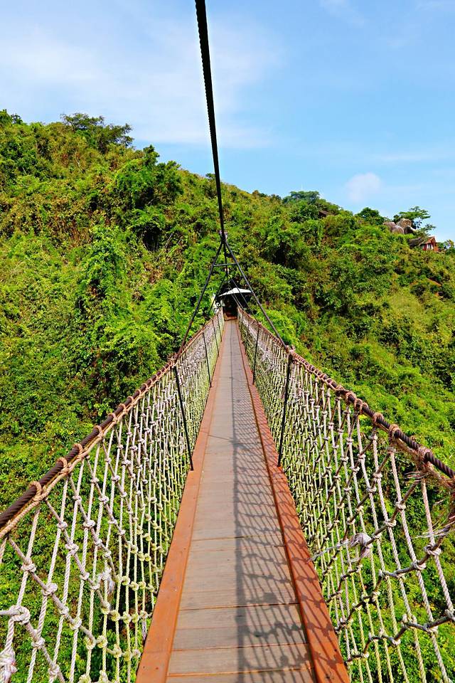 森林有里一条名为过龙江的索桥,它连接着两谷,陕长的索道,让人望而生畏,但又因多年前舒淇在的一张海报也引来了无数的游客纷至沓来。有时远处飘来的徐徐海风,穿过桥面,荡进山谷,尤为清幽舒适。