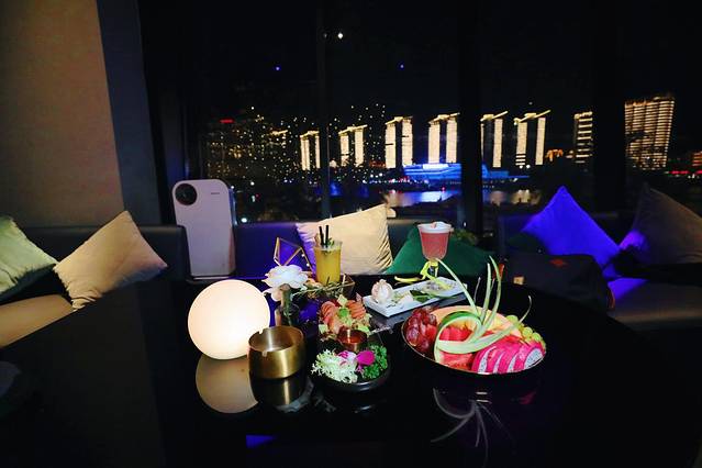 找个视野绝佳的靠窗位置坐下来,窗外就是流光溢彩的 三亚 夜景。