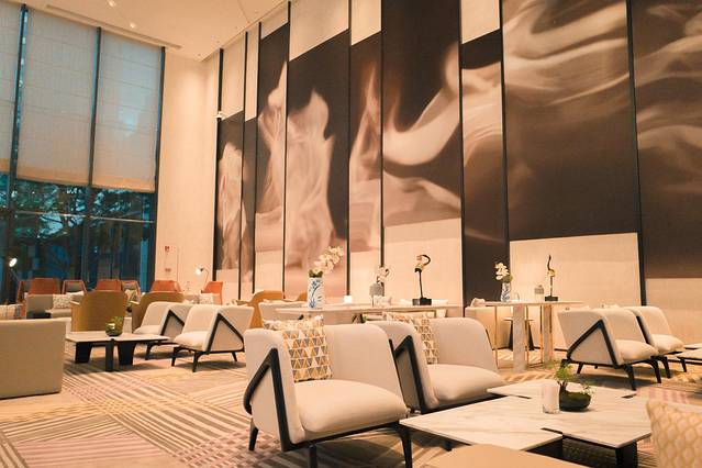 除了气势磅礴的背景墙带来的视觉冲击,大堂里香氛系统是清新的柑橘和馥郁的紫罗兰,尾香是雅致的木香。由它们汇合而成的美妙气息,舒缓了不少一路过来的舟车劳顿。