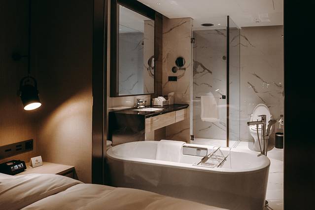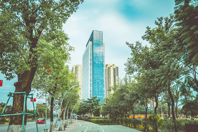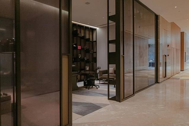 还没到酒店,远远便被成片的落地玻璃幕墙吸引。