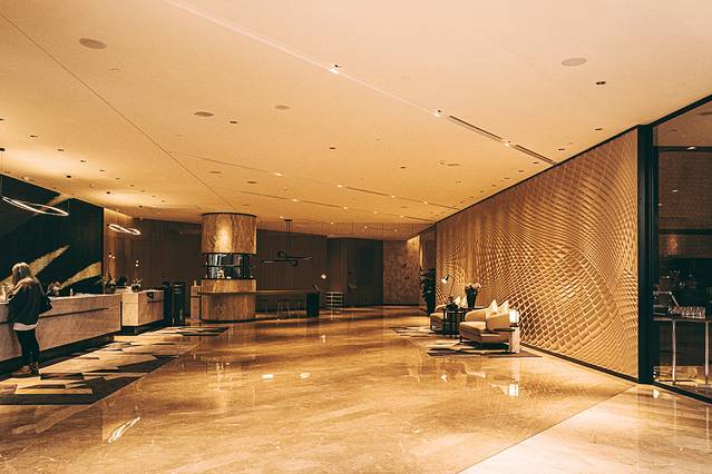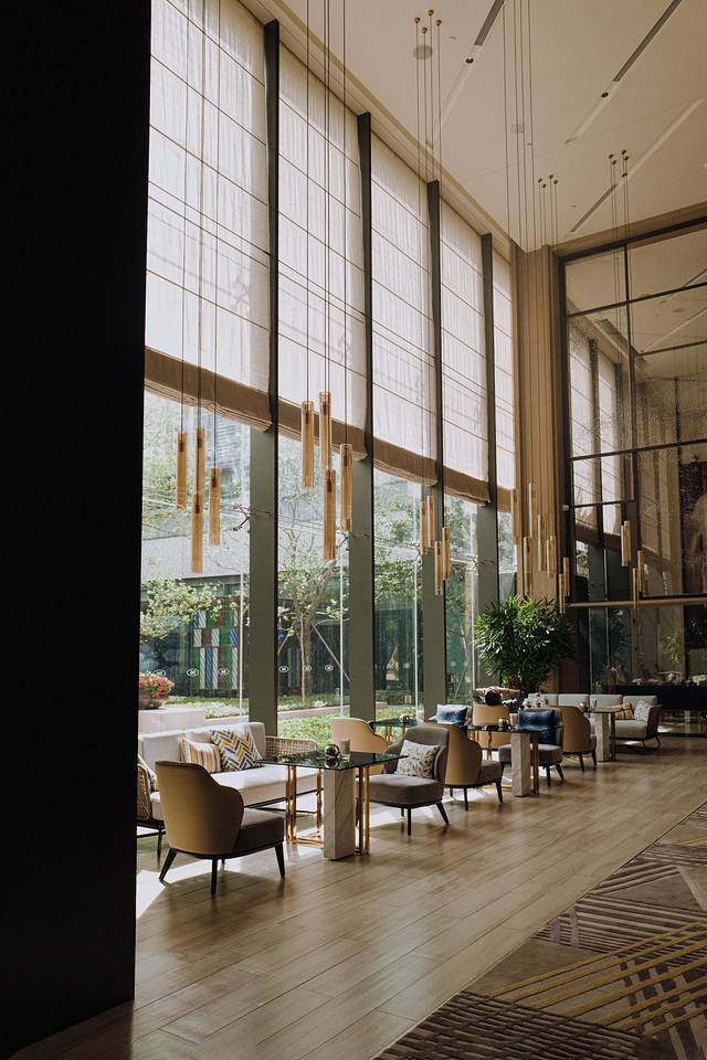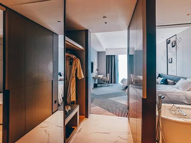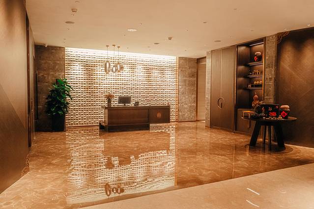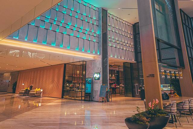 经由旋转门进入大堂,才发现里面大有乾坤。在酒店的整体设计里面,能看出有深入挖掘佛山这个功夫之城的独家记忆,每一处细节都是传统人文与现代艺术的交融碰撞。