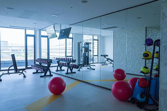 吃饱喝足,虽然出门在外,但是咱健身的小习惯可不能落下,酒店配备健身中心和恒温泳池,在这里锻炼还可以远眺文翰湖,给身体和眼睛都充充电。