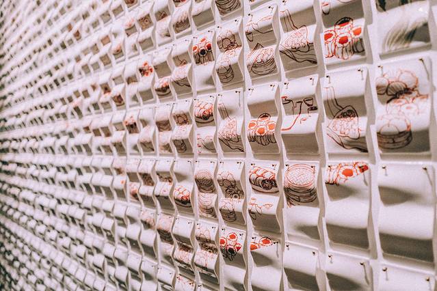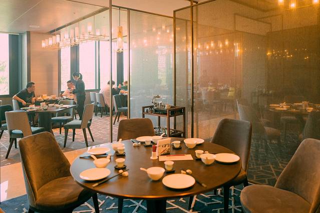 最具特色的还是前台陶瓷瓦片排列而成的背景墙。佛山素有“南国陶都”之称,印有早茶点心的陶瓷瓦片打破了前台成片暗色大理石的沉闷。走到这里,我不禁对餐厅里的美食有所期待。