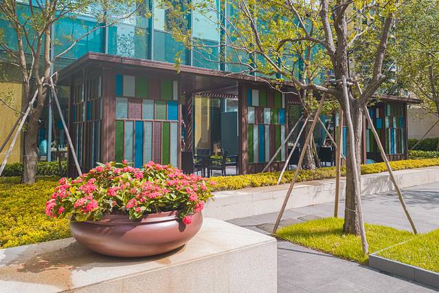 和三五好友在这里闲情小坐,看着户外的花园景观,郁郁葱葱的花草在肆意生长着,感觉被治愈了。