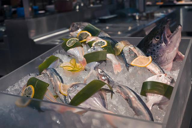 餐厅内设有多个开放式厨房,可以自行挑选生鲜食材,由厨师炮制各色美食。
