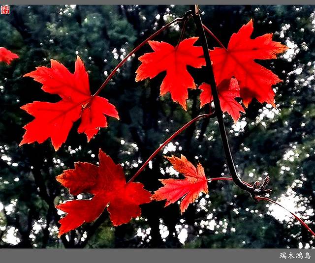 又是一片秋叶飘落下来,夏姑娘依依不舍地离开了,秋天迈着轻盈脚步走了过来。秋,的确是一个美丽迷人的季节,天高云淡、风清气爽、宁静而恬淡。最先感觉到秋意的降临,便是那一缕秋风,立秋过后,头顶上还骄阳似火,一阵秋风吹来,让人顿感一阵清凉和舒适,就连树叶随风翻动的声音也清朗了许多,抬眼望去,天空似乎也明净了许多,云儿也变的更悠然,更轻盈了,哦,秋天来了。闲暇时分,与影友相约又来到沙河畔的网红打卡地——红枫林,河边的芦花举起的白色飘逸,苹果露出红红的笑脸,随风飘来阵阵的水果成熟的幽香。金黄的银杏、火红的枫叶如彩蝶般随风起舞,充满了诗情画意。站在一片红黄相间的红枫林里,看着天边那一抹朝霞,将这片红枫林染成一片红色,天地相接处霞光遍地。徜徉在哪片红霞里,醉人的眸子顾盼生情,撩动着这个迷人的季节,秋风徐徐而来,轻佛着大地,掀动着红云翻滚,真不知该如何形容眼前的一切。金秋时节,秋高气爽、天高云淡、秋水长天、色彩斑斓、枫情万种、五彩缤纷、如诗如画,美若仙境。我喜欢秋日里的这片红枫林,那种淡然、洒脱、和寥廓。无不充满诗情和画意。秋天是美的、是秀的、是耐人寻味的、是流连忘返的,那片红艳艳的枫树林更是娇媚多姿。给人一种欢快、一种欣慰、一种愉悦、一种和谐的自然美。我默默地注视着你,欣赏着你潇洒的身姿,你美丽的倩影,总是让人回味无穷。你是风、是雨、是阳光,是红枫林里飘洒出的相思云朵。