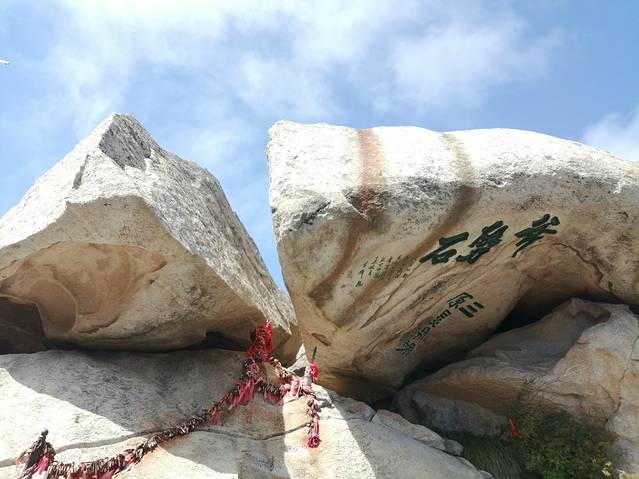 东峰,日出最佳观景点~太阳 太阳 人称朝阳峰,由一主三仆四个峰头组成,朝阳台在峰头较高,玉女峰在西,石楼峰居东,博台偏南,石楼峰的崖壁有天然的石纹,形似巨型掌印,被列为关中八景之首的华岳仙掌,巨灵神开山导河的故事就源于此。