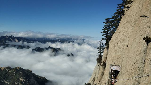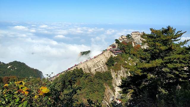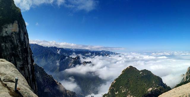 长空栈道:是华山派宗师——元代贺志真道长为远离尘世静修成仙,在悬崖绝壁镶嵌石桩,铺上木板而成,游走在上边十分刺激。