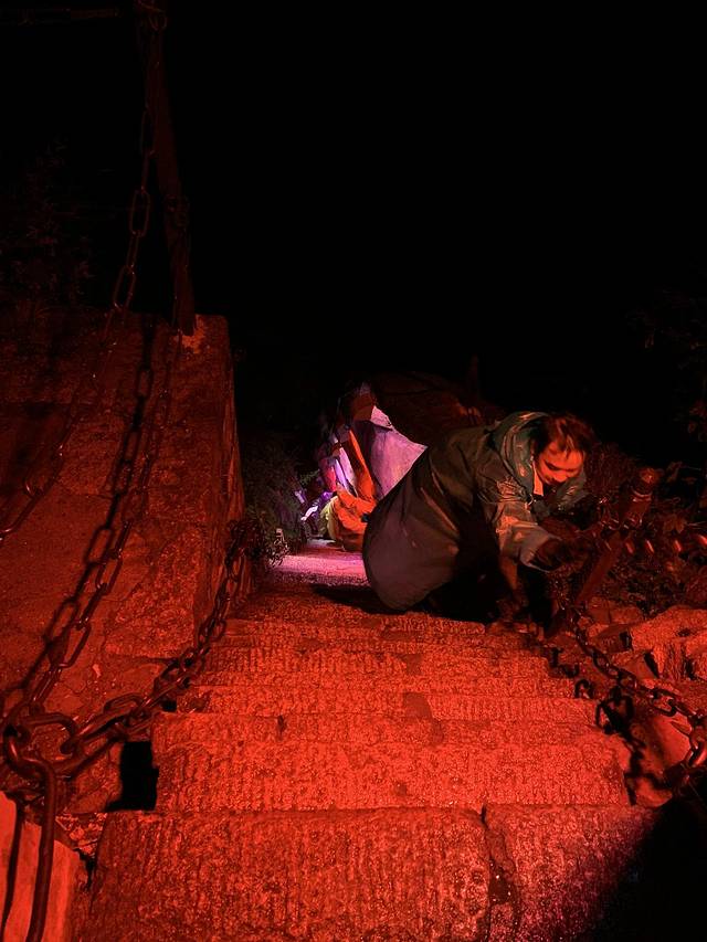 6号晚上8:00时正式开始夜爬,虽然下着毛毛细雨,依然不能阻止我们的脚步拳头 披着雨衣我们出发啦~~