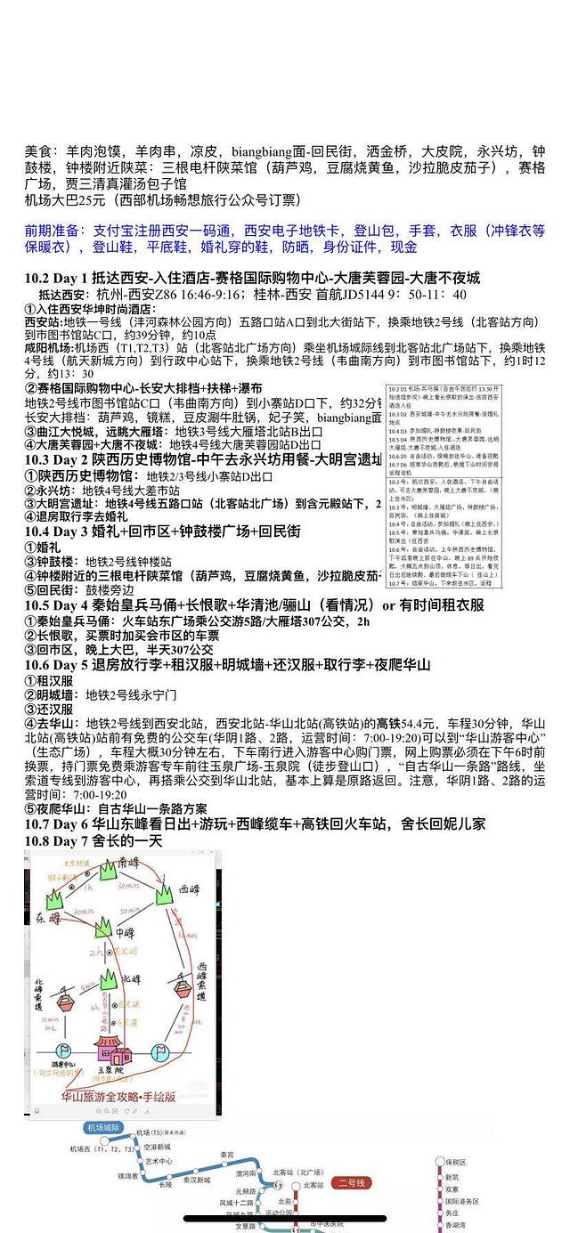 行程:31号晚赴桂林参加呆子婚礼、2号飞西安钟楼、鼓楼、回民街、大明宫、3号赴永寿参加婚礼、5号秦始皇兵马俑博物馆、大雁塔、大唐不夜城、6号西安城墙、晚上夜爬华山、7号大唐芙蓉园、8号永兴坊,回程胜利 没错,就是这么满满当当~