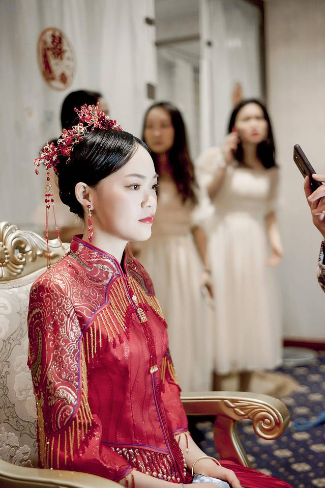 1号早上一大早就开始起来化妆的我们的美新娘呀可爱 可惜,我要早早去借衣服(太仓促,没来得及准备),都没得拍下呆子带头纱等太多细节图,还要赶去酒店,提前试音响,找音乐······哎呀呀,真是忙碌又紧张的早上呀
