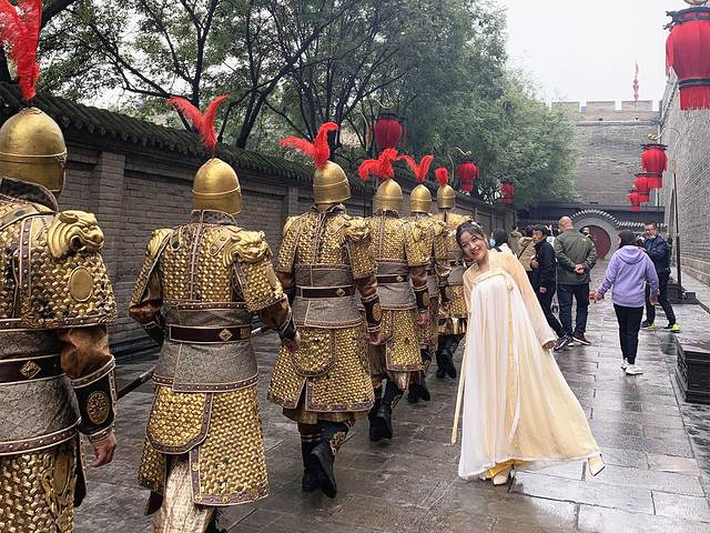 偶遇路过的穿着黄金战甲的“巡防士兵”,偷拍一个,他们都好高大,显得我好小只。