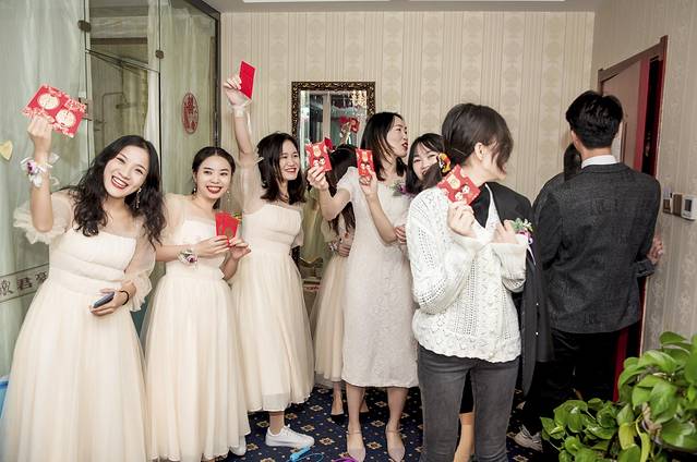 我不会告诉你们,这帮急不可耐的男士们活生生把门上保险栓推坏了冲进来的白眼 白眼 好吧,既然进来了,那也是要经过我们伴娘团的重重考验才行呀!!!阴险 阴险