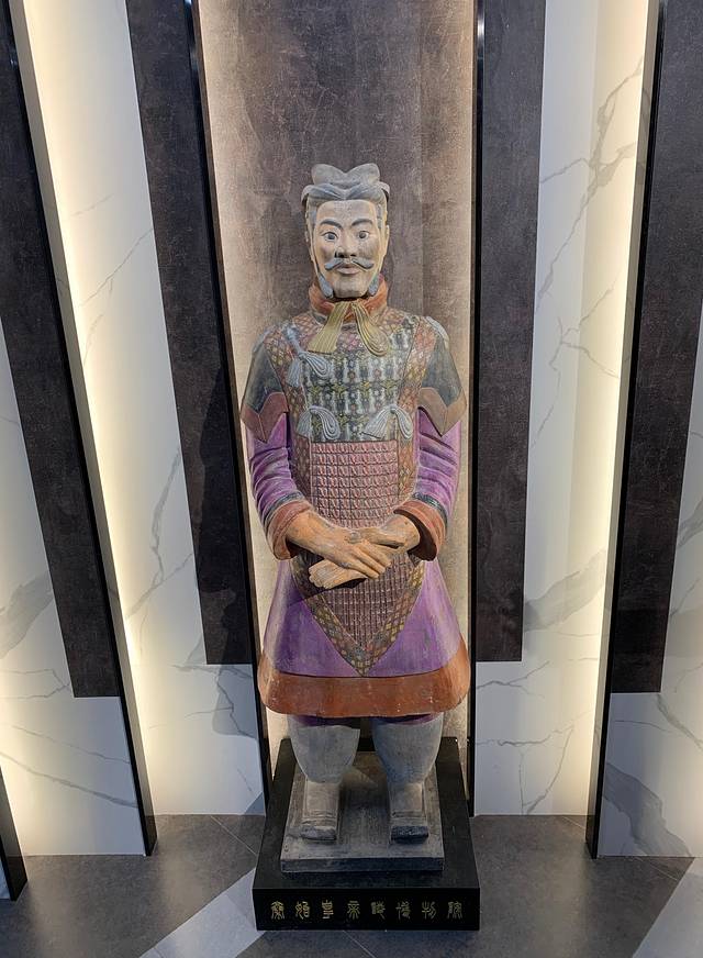 兵马俑有将军俑,立射俑和跪射俑三种,这边就给大家看个仿制彩色兵马俑吧~~表情生动,衣着鲜艳,站姿挺拔