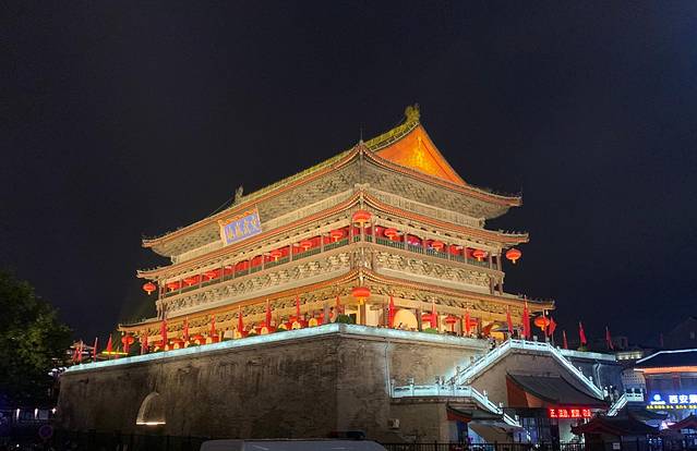 回民街还是挺短的,与其他小吃街无异,来过就好,又回到开始的钟、鼓楼呀,晚上的灯光一打,绝美