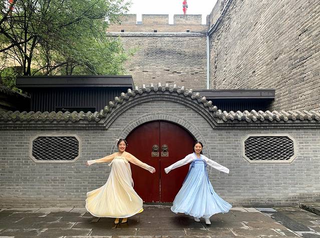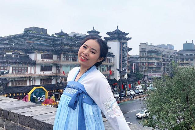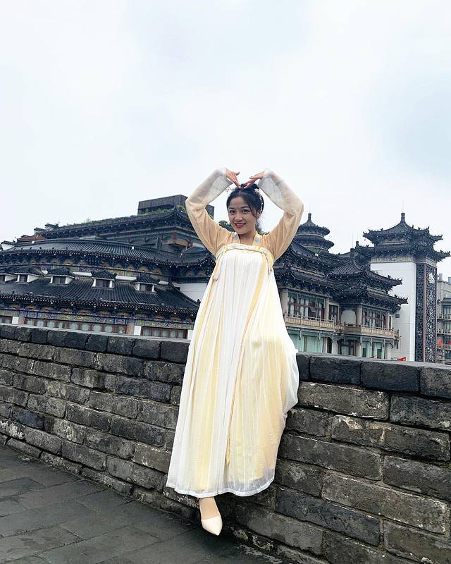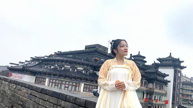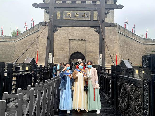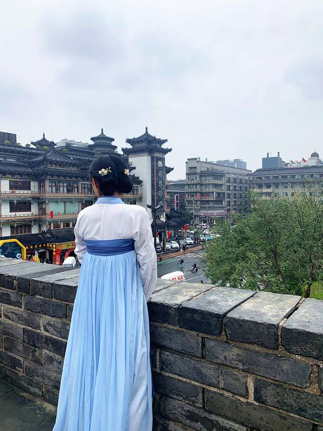 先来一张,路人小哥给我们拍的合影吧~~整个城墙,穿汉服很少,我们成了焦点,不仅一路有人问我们在哪里租的衣服(其实是我们自己提前在网上买的)还有大人对小孩说“快看,古代来的人”我 ··········糗大了