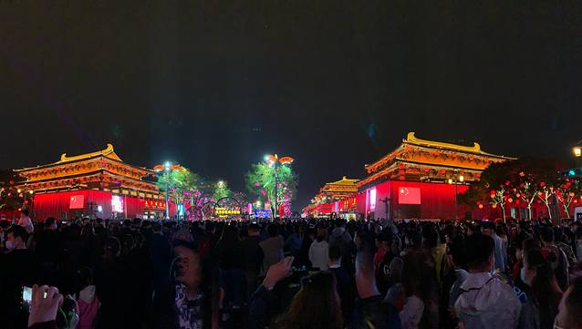 吃完饭我们就赶去大唐芙蓉园了,9点多才到,国庆期间营业至10:30 ,我们就匆匆逛了一圈