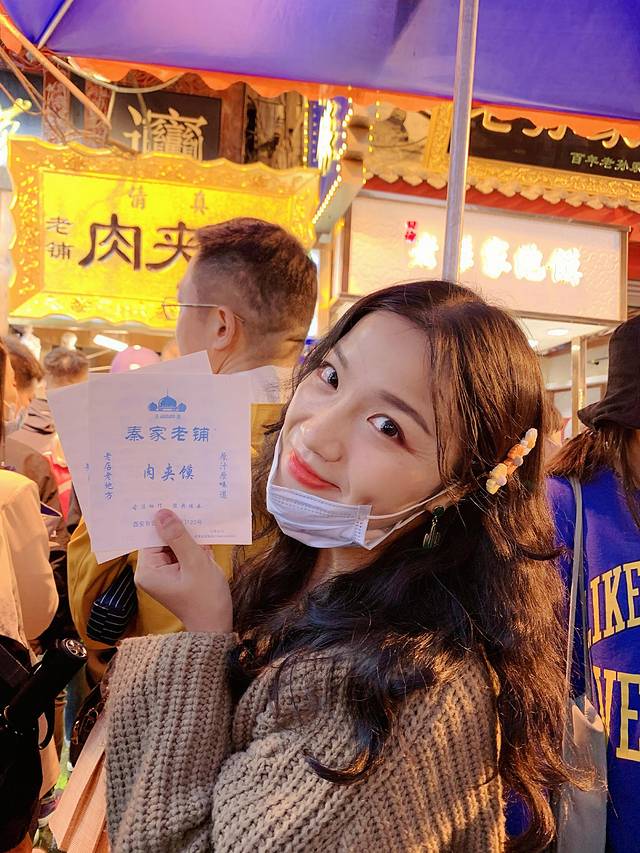大家看好咯,秦家老铺肉夹馍哦,不仅羊肉正宗入味,还有青椒解腻,突然就想起以前大学那家肉夹馍了,也是红烧肉青椒的,还有干豆腐鸡蛋,,啊啊啊流口水,真是好怀念呀可怜 PS:好喜欢这张排队照片哦,光线绝了