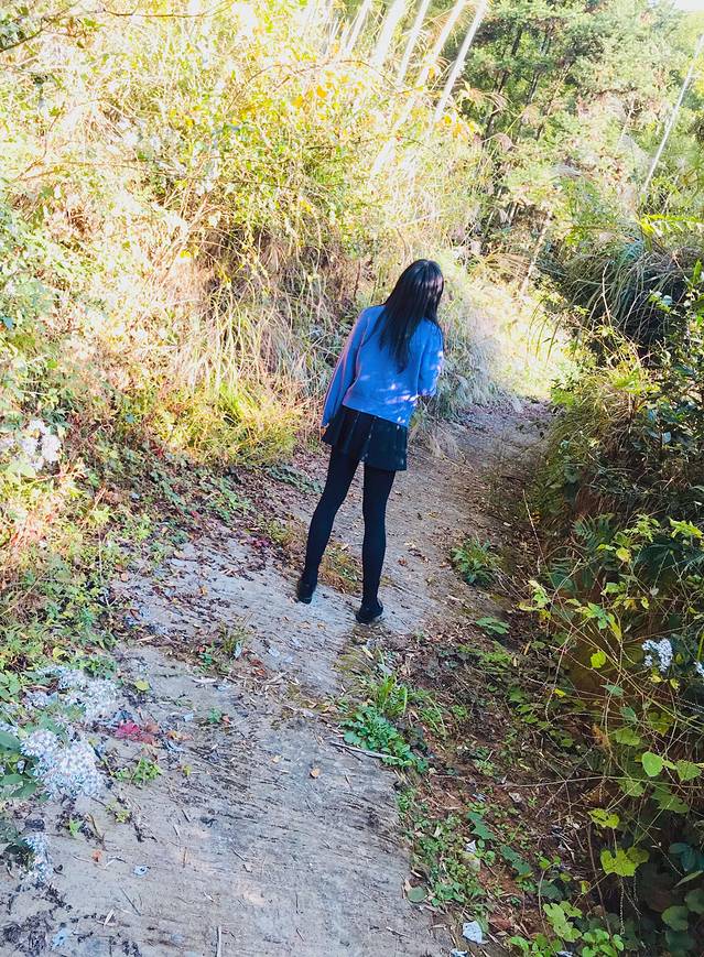 出门之后先是沿着民宿旁边的小路,继续往山里面走。还好有朱老板跟着,不然我这胆子一个人肯定不敢,看到这么多竹子,我们就想是不是能挖点竹笋回去,结果朱老板钻进竹林之后,不知道被什么东西沾了一身,半个竹笋的影子也没看到,挖笋计划宣告失败,哈哈。